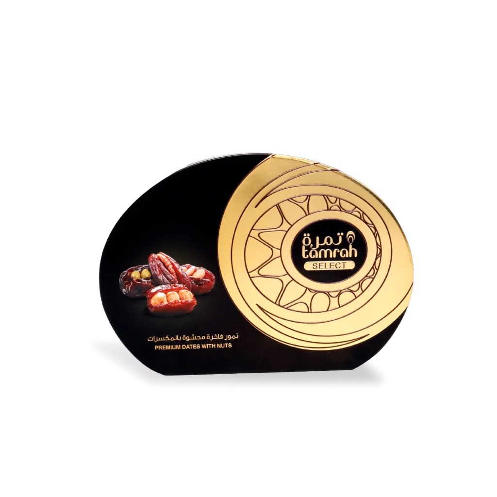 A signature variant of Tamrah, Tamrah Select is a collection of the finest Khudary dates paired with premium nut fillings – a gourmet and wholesome treat.